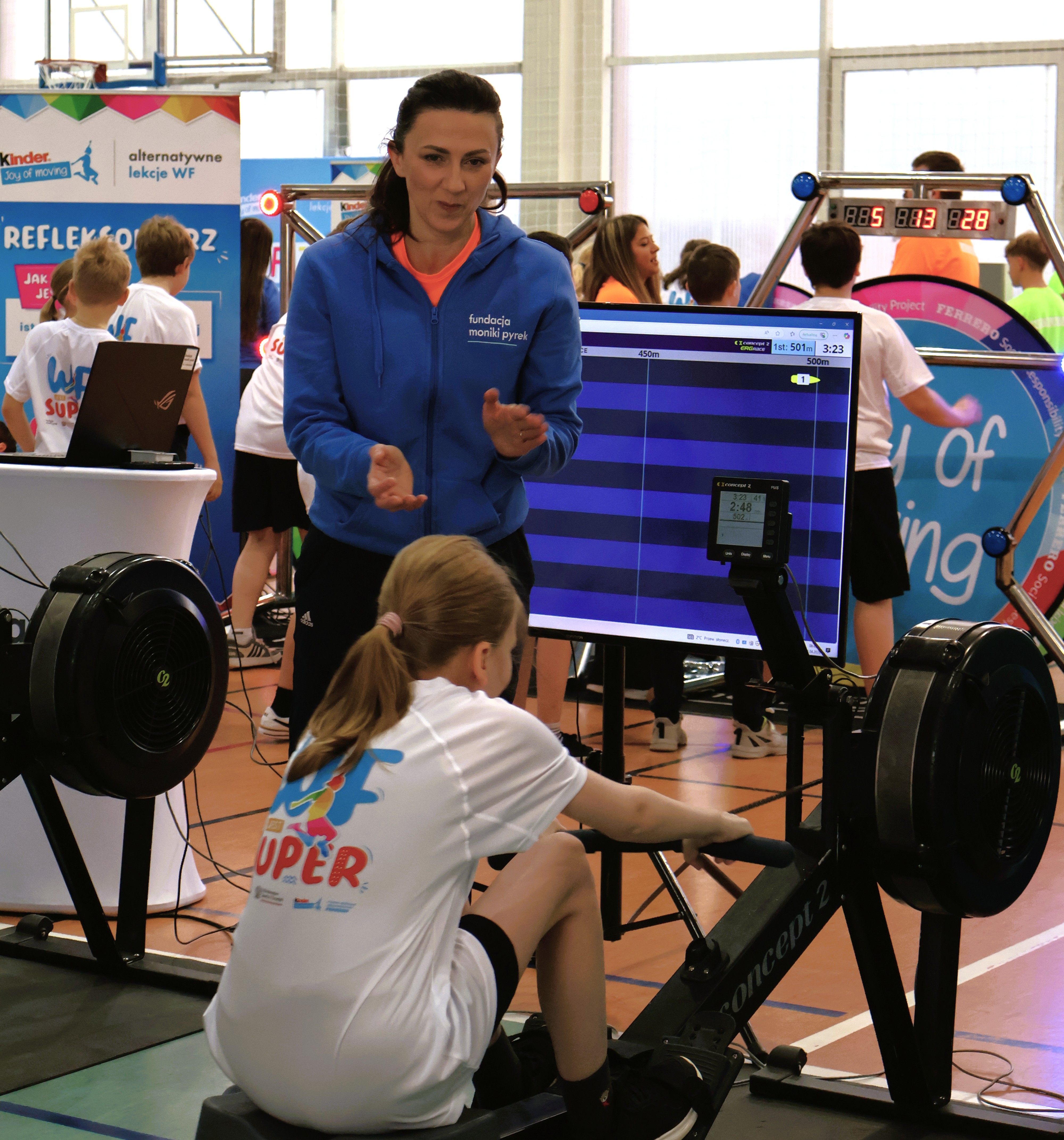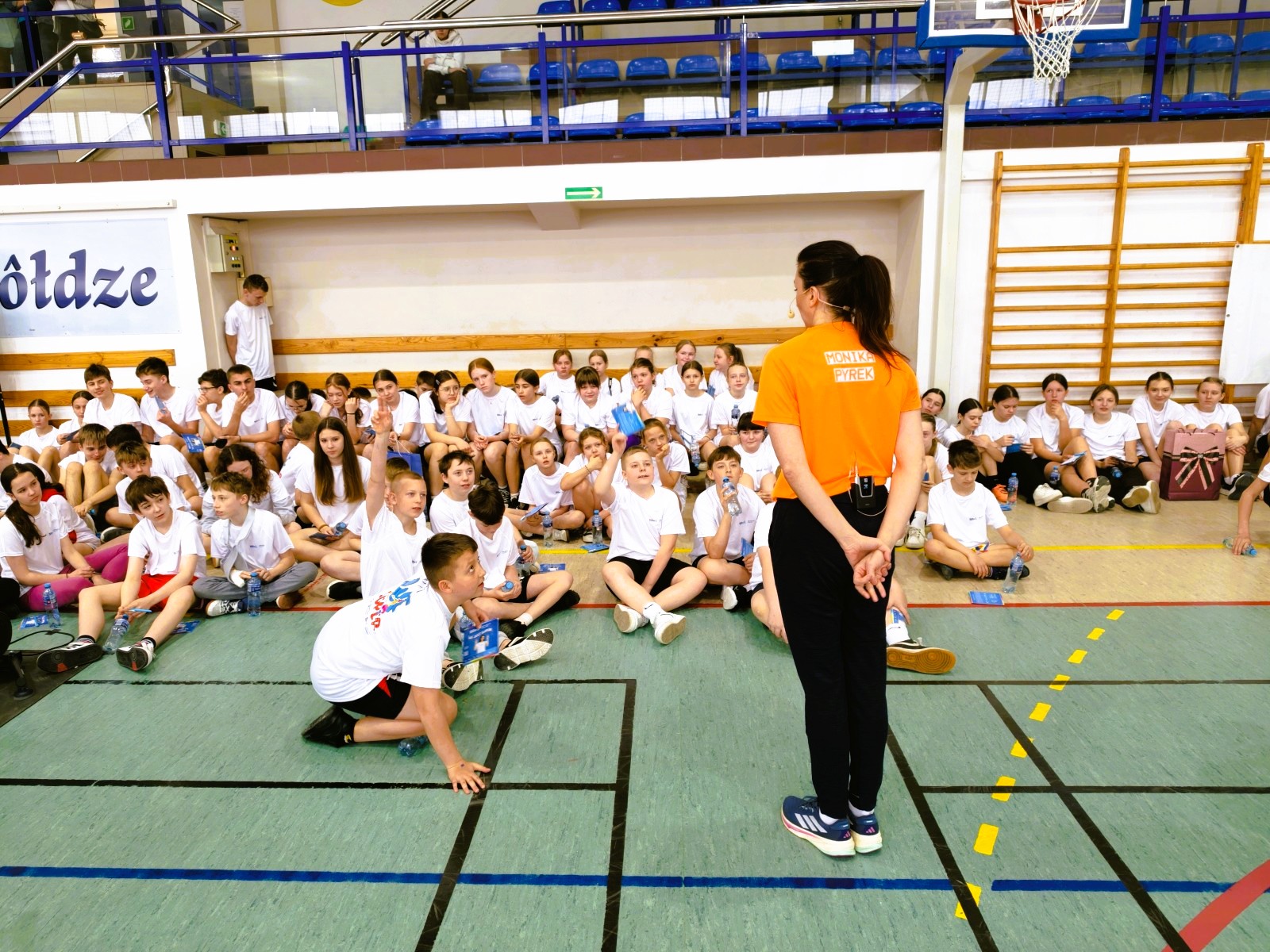 Gwiazdą wydarzenia była oczywiście MONIKA PYREK, która poprowadziła rozgrzewkę , opowiadała o pozytywnych stronach zdrowego stylu życia, dzieląc się jednocześnie swoją pasją do sportu oraz inspirując młodych uczestników do aktywności fizycznej. Jej energia, zaangażowanie i bezpośredni kontakt z uczniami sprawiły, że wydarzenie na długo pozostanie w pamięci wszystkich obecnych.