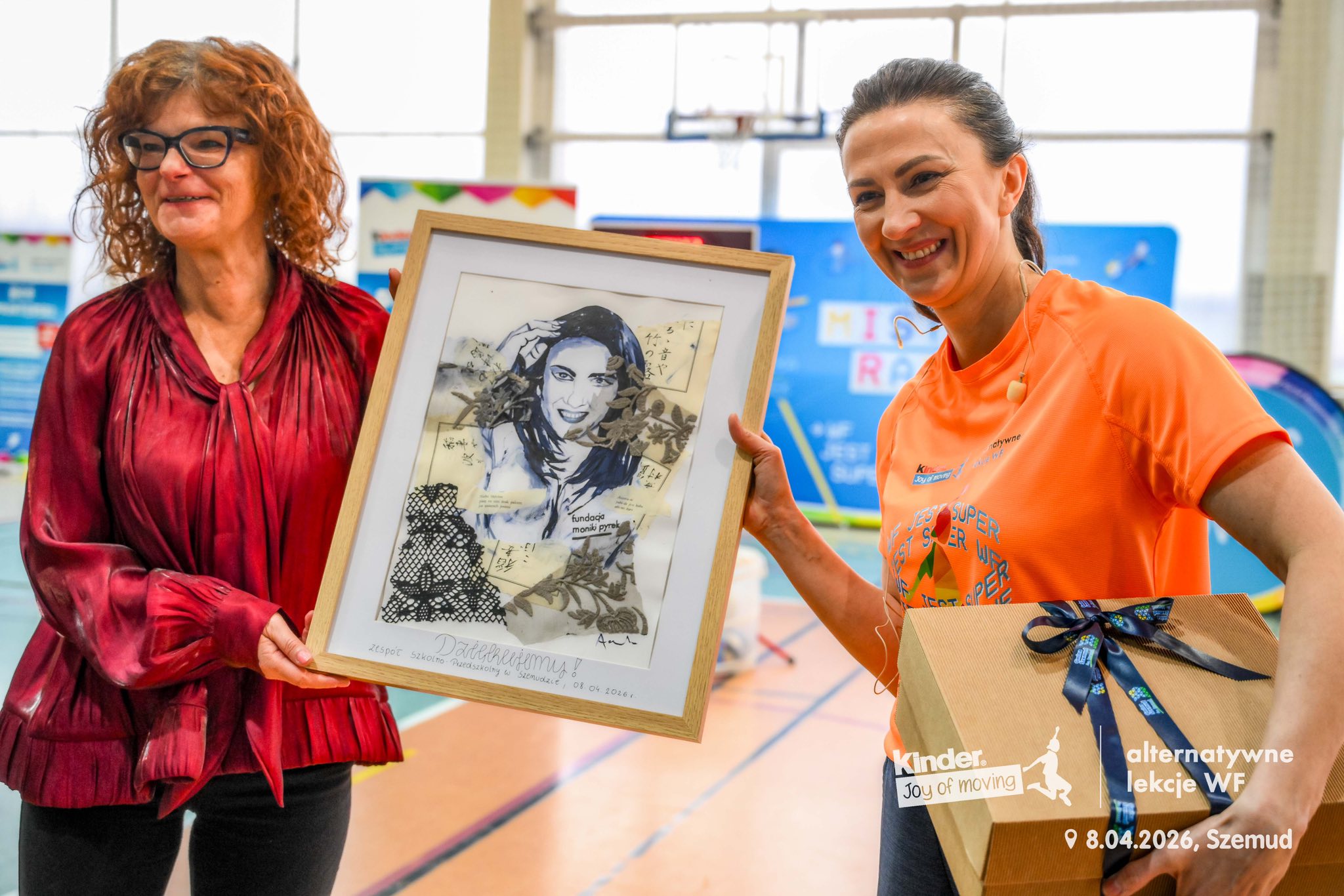 w ramach podziękowania wręczyła Monice Pyrek specjalnie przygotowany na tę okazję artystyczny portret . Wydarzenie uświetnili również swoją obecnością Wójt Gminy Szemud Pan Ryszard Kalkowski oraz Sekretarz Gminy Szemud Pani Barbara Rzeszewicz, którzy wręczyli symboliczne upominki Monice Pyrek oraz wszystkim instruktorom z Fundacji Moniki Pyrek zaangażowanym podczas imprezy.