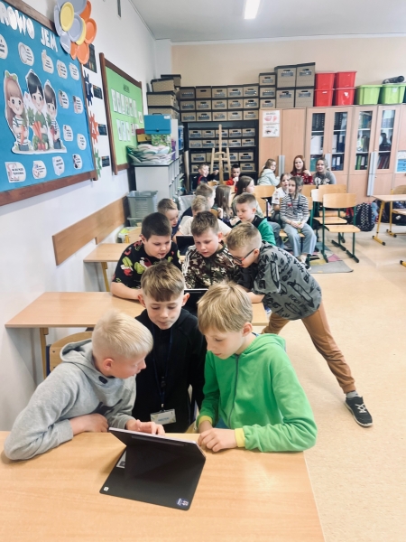 Czasem najlepsze lekcje nie zaczynają się od dzwonka i nie kończą wraz z ostatnim pytaniem w zeszycie. Czasem lekcja to chwila, w której dzieci uczą się czegoś więcej –empatii, zrozumienia i wrażliwości na drugiego człowieka. W kwietniu, w ramach Światowego Miesiąca Świadomości Autyzmu, klasa 3b wraz z panem Mateuszem postanowiła podzielić się z innymi tym, co już wie o autyzmie – ale w zupełnie niezwykły sposób.Tym razem to Bystrzaki zostały nauczycielami. Z ogromnym zaangażowaniem przygotowały quiz o autyzmie i zaprosiły do swojej klasy uczniów z klas 1–3. Dzięki tabletom nauka stała się zabawą – ale najpiękniejsze było to, co działo się między pytaniami. Trzecioklasiści pomagali kolegom obsługiwać sprzęt, cierpliwie tłumaczyli trudniejsze pojęcia, a przede wszystkim –byli blisko. Z serdecznością, uśmiechem i otwartym sercem. To była prawdziwa lekcja – nie tylko o autyzmie, ale o tym, jak wiele możemy dać sobie nawzajem, kiedy jesteśmy razem. O tym, że każdy z nas jest inny, ale każdy zasługuje na zrozumienie. Dziękujemy klasie 3b za tę wyjątkową chwilę. Bystrzaki, pokazaliście, że uczyć można nie tylko z podręcznika – ale przede wszystkim z serca.