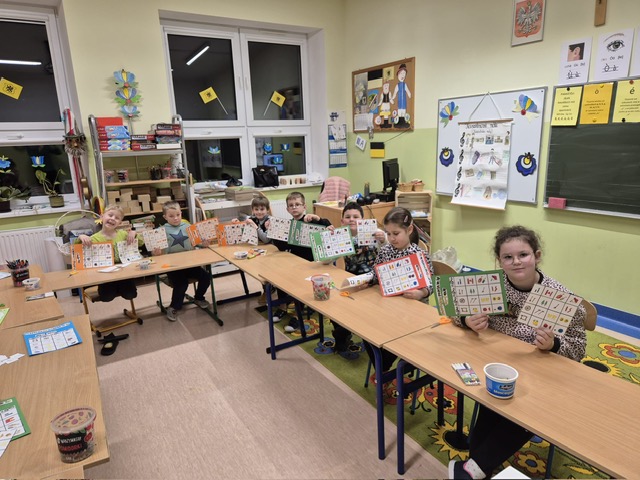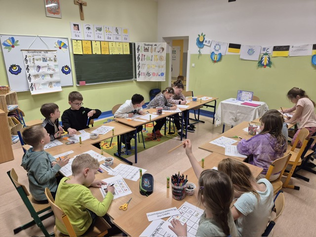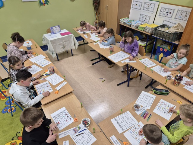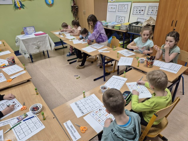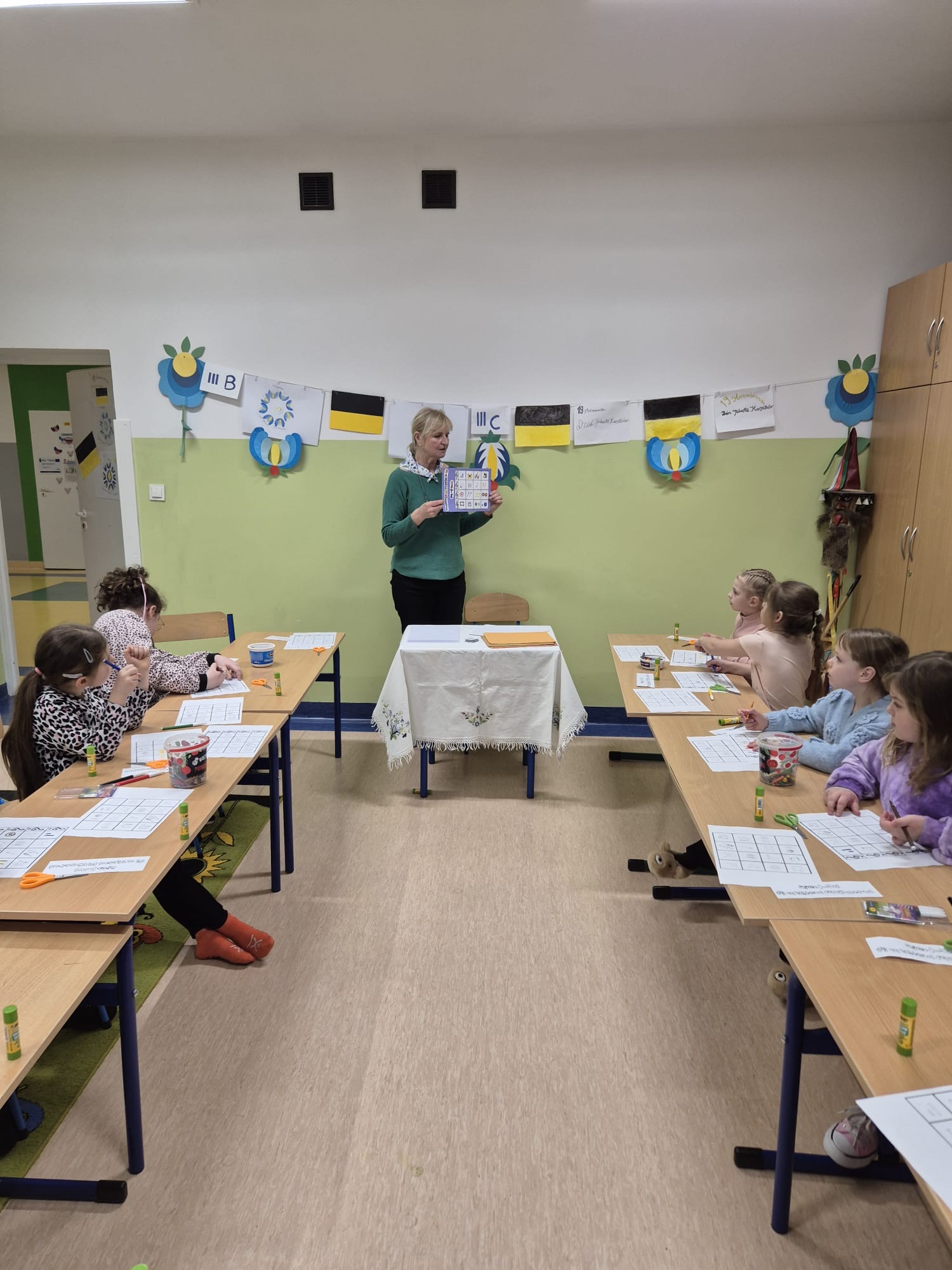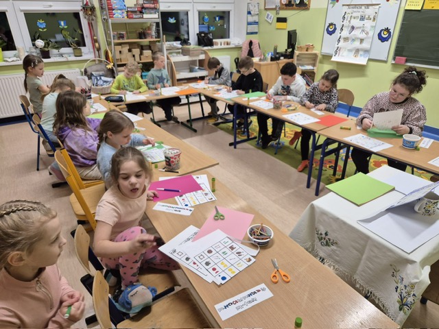 Impreza pod hasłem "Kaszubska nocka w szkole" dla uczniów klas I a i b uczących się języka regionalnego - kaszubskiego odbyła się z piątku na sobotę tj. 14 - 15.03.2025 r. Każdy uczestnik przybył do szkoły wyposażony m. in. w śpiwór, poduszkę, przybory toaletowe oraz dużą porcję dobrego humoru. W czasie wspólnie spędzonych chwil, dzieci wzięły udział w warsztatach plastycznych, podczas których wykonały układankę kaszubskich nut. Po kolacji przystąpiły do zmagań z legendą kaszubską pt. "Stolemy". Czas umilały wspólne zabawy oraz robótki na szydełku i drutach. Przed snem, na dzieci czekała niespodzianka wieczoru - oglądanie bajek z rzutnika lat 80 - tych (kino z PRL - u). Rano o godz. 8.00 pobudka, śniadanie oraz ostatnia zabawa. W oczekiwaniu na rodziców śpiewaliśmy kaszubskie piosenki. Nocka była bardzo udana i na pewno długo zostanie w naszej pamięci.