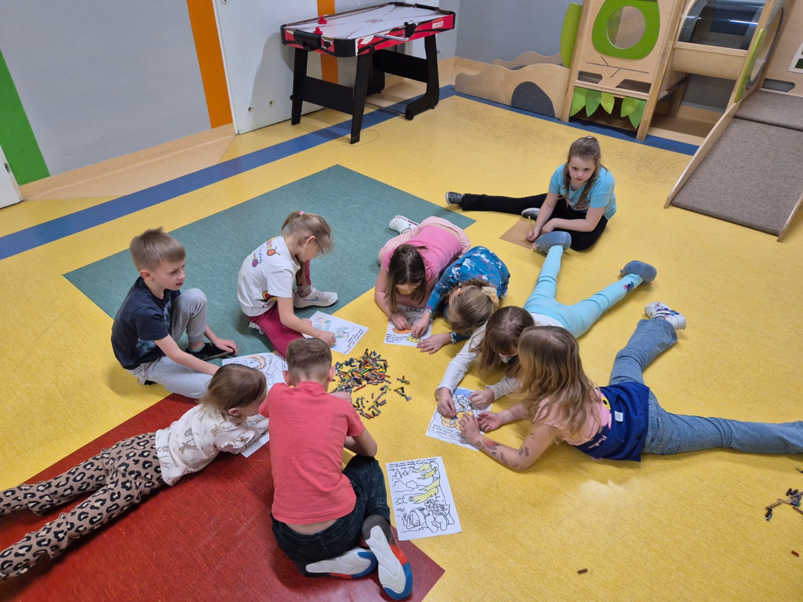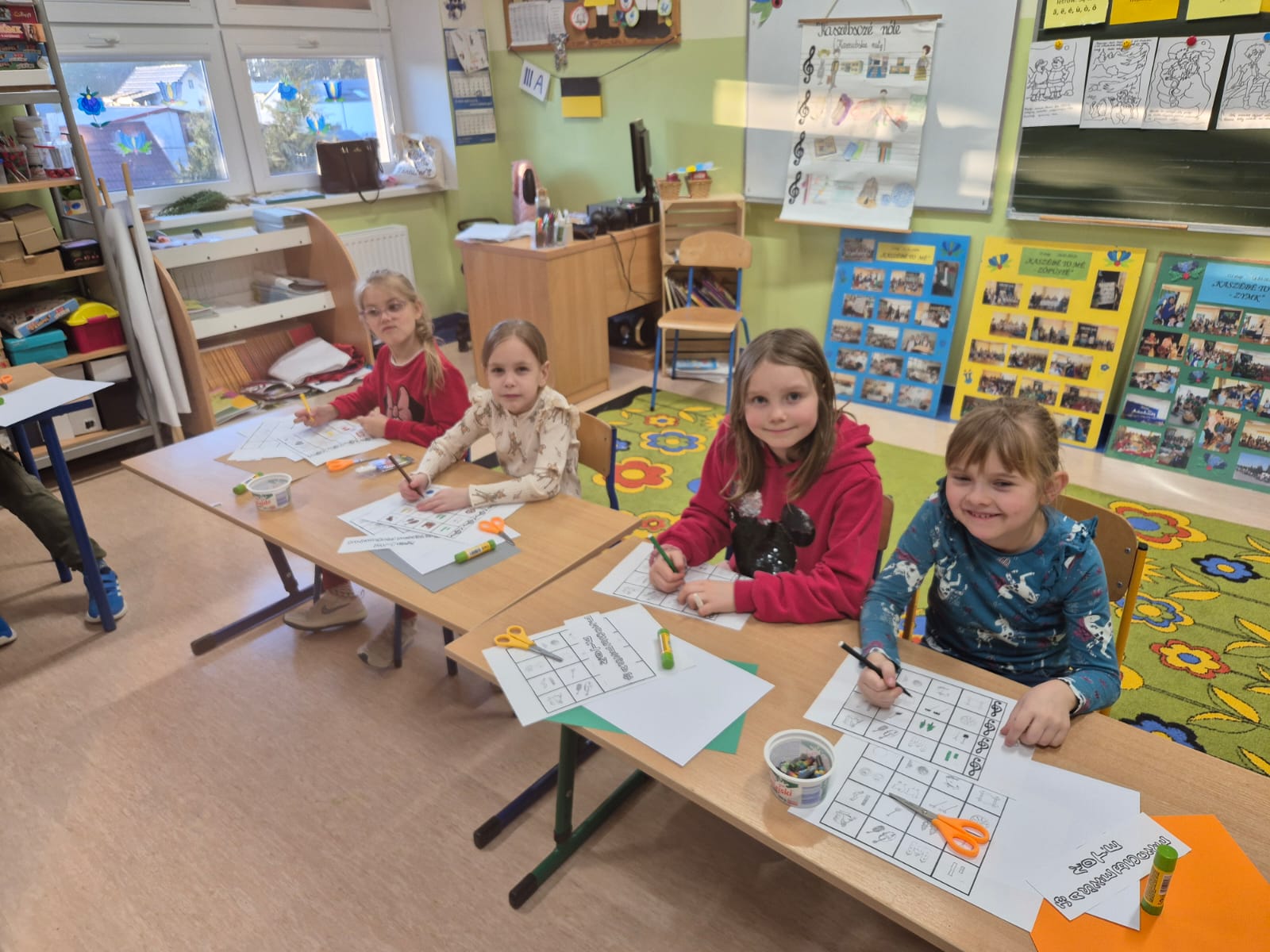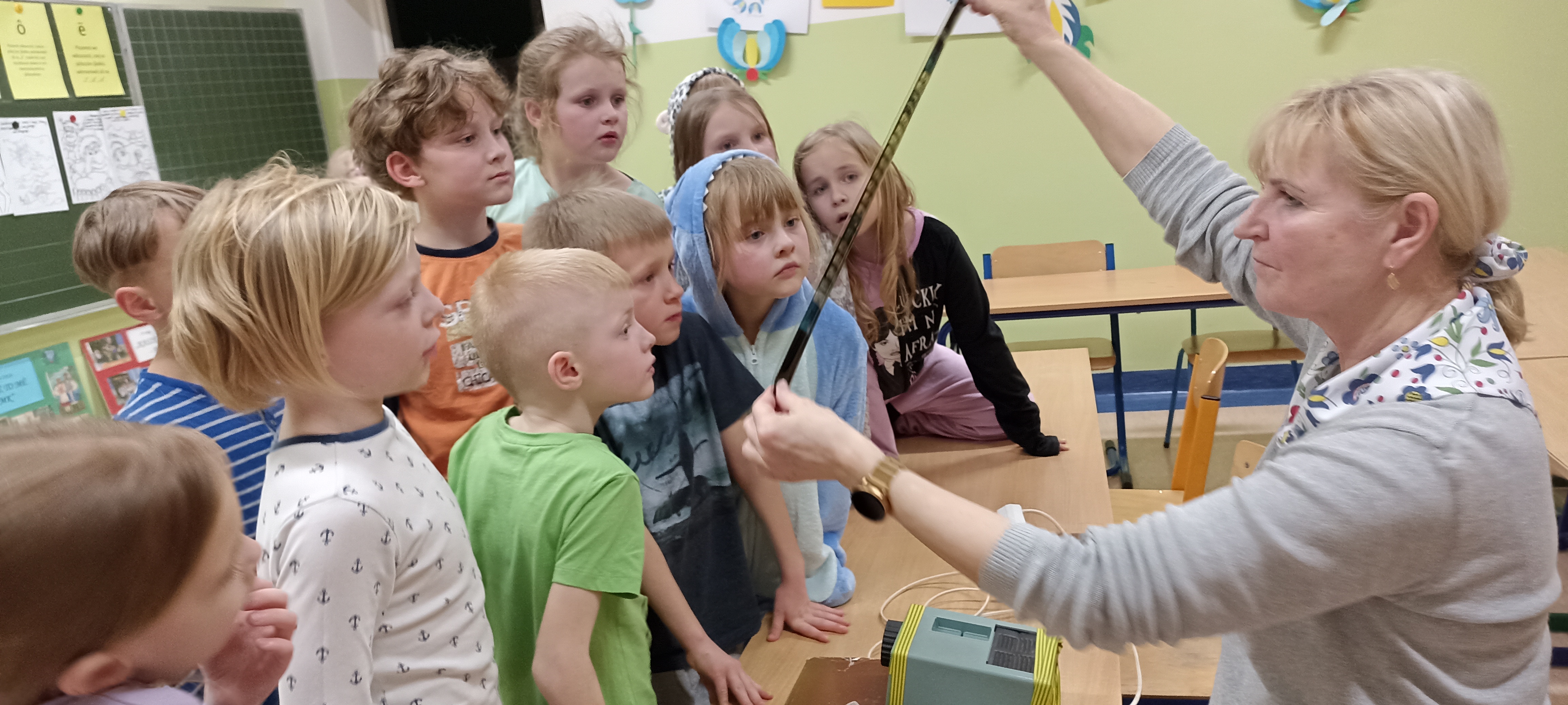 Kolejne nocowanie w naszej szkole przez uczniów uczących się języka kaszubskiego odbyło się dnia 21 na 22.03.2025 r., które przyniosło wiele radości. Tym razem z poduszkami i śpiworami przyszły klasy I c i I d. Wieczór rozpoczął się kolorowaniem i układaniem tradycyjnych kaszubskich nut i nauką robienia na drutach. Potem układanie historyjki po wysłuchaniu legendy kaszubskiej, a na samym końcu uczniowie oglądali bajki wyświetlone przez stary projektor na kliszę. Uczniowie byli zafascynowani atrakcjami tego wieczoru. Sen zmorzył wszystkich o 22.00. Po przebudzeniu porządkowaliśmy salę i zjedliśmy smaczne śniadanie. Ten wieczór na długo pozostanie w pamięci uczniów.