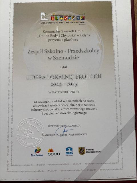 Na początku roku szkolnego informowaliśmy o przystąpieniu szkoły do projektu „LIDER LOKALNEJ EKOLOGII” organizowanego przez Komunalny Związek Gmin ”Dolina Redy i Chylonki”.