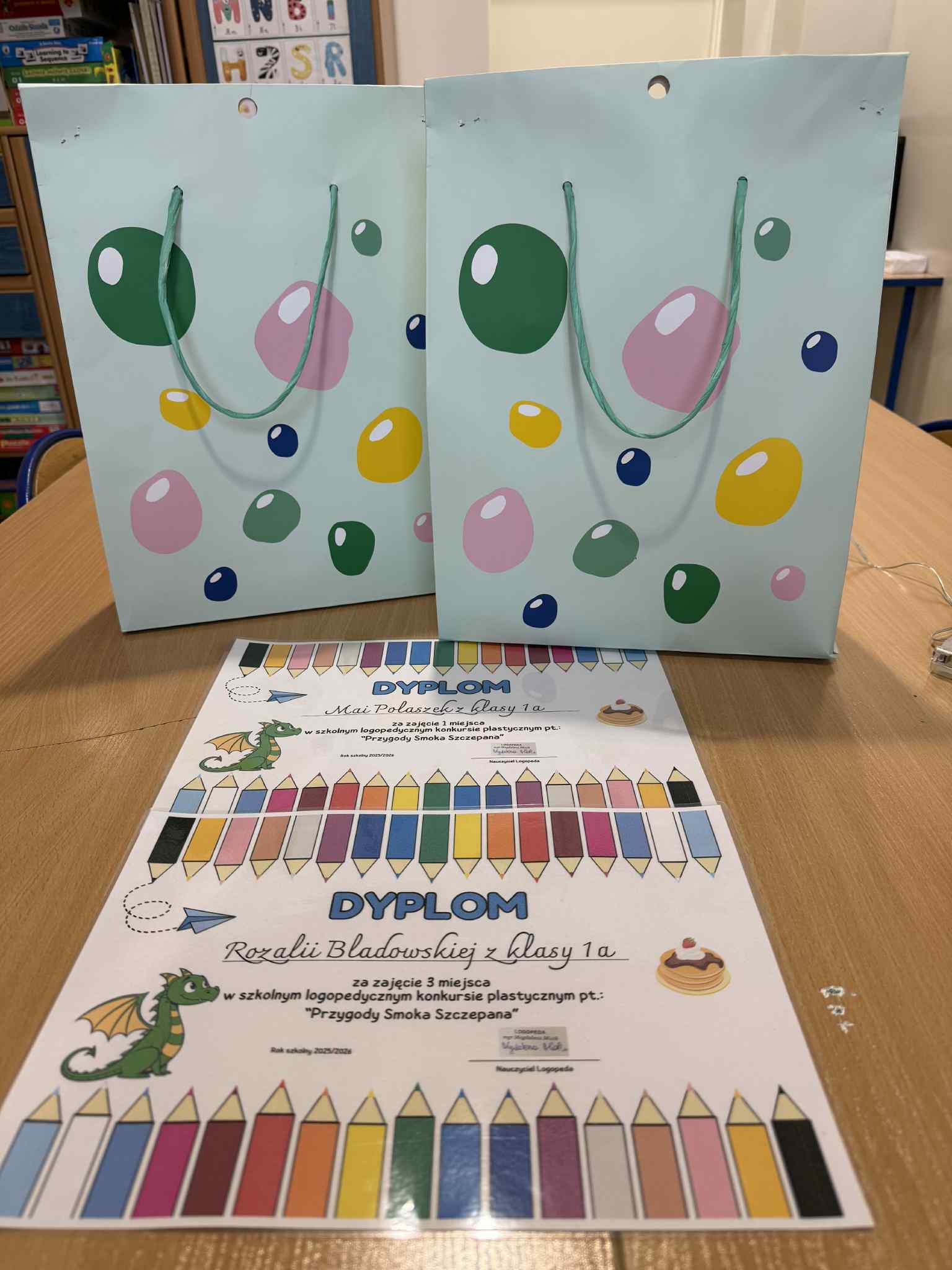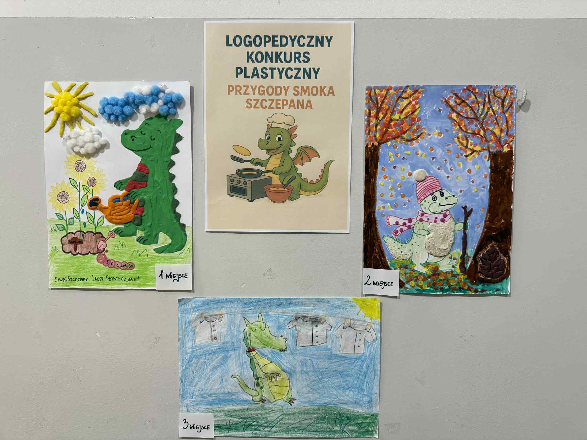 W naszej szkole odbył się konkurs plastyczno–logopedyczny dla uczniów klas I–III pod tytułem „Przygody Smoka Szczepana”. Zadaniem uczestników było wykonanie pracy plastycznej przedstawiającej Smoka Szczepana wykonującego dowolną czynność, z uwzględnieniem jednej z wybranych głosek: szumiących, syczących, ciszących lub głoski „r”. Konkurs połączył elementy terapii logopedycznej z twórczą aktywnością plastyczną, rozwijając nie tylko poprawną wymowę, ale także wyobraźnię i zdolności manualne uczniów.