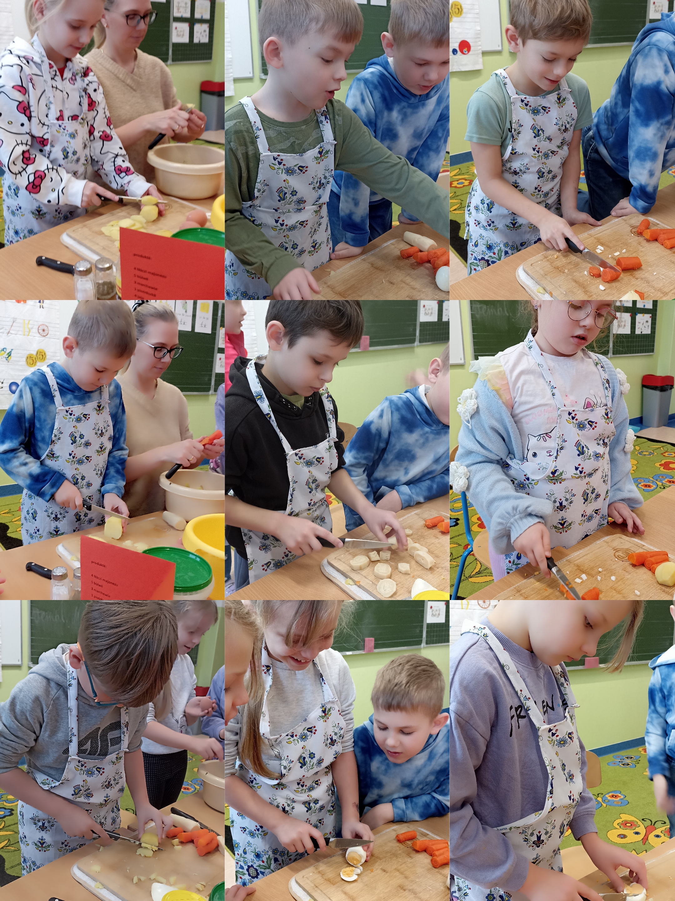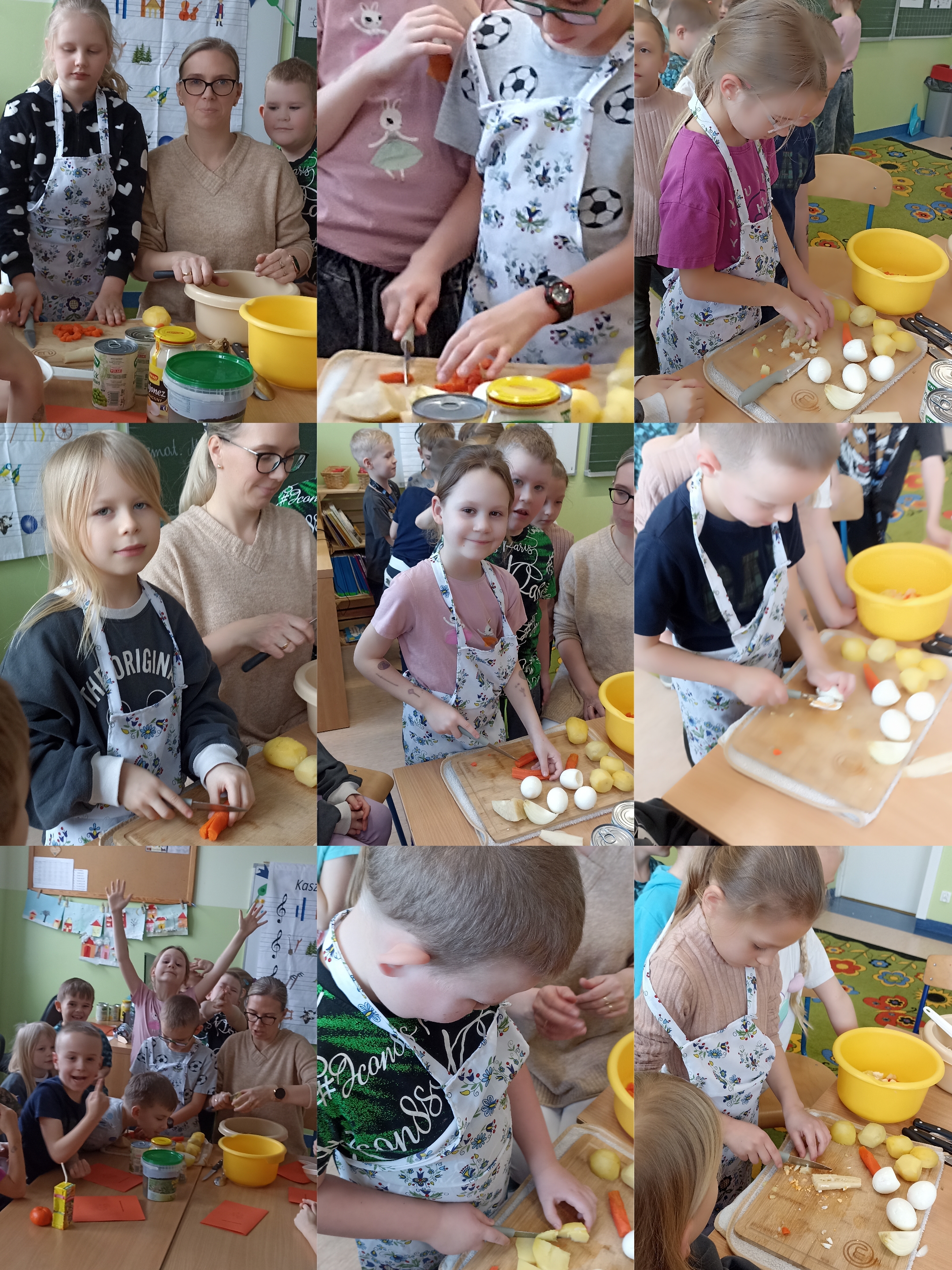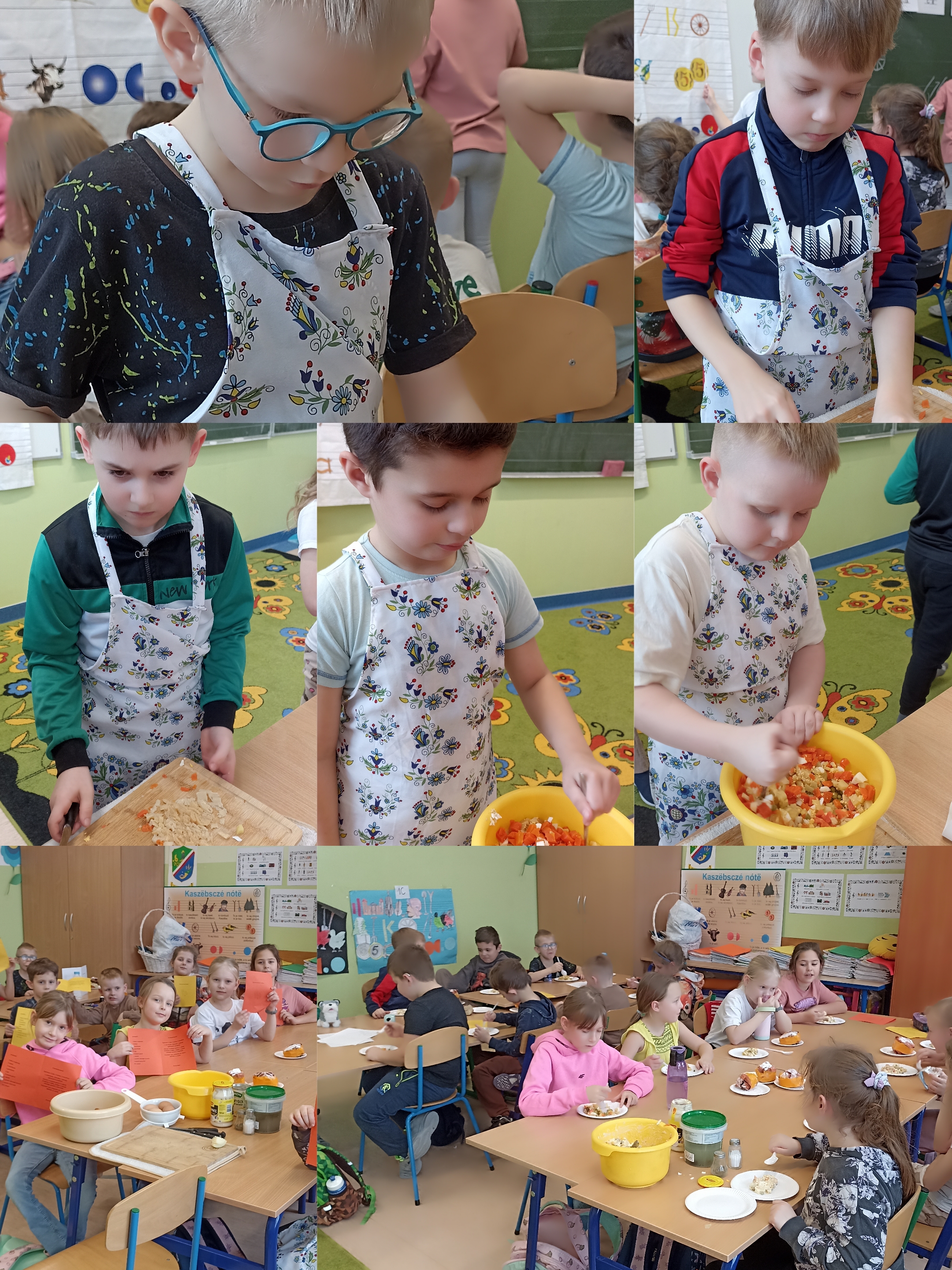 W dniach 10–12 lutego 2026 r. uczniowie klas pierwszych podczas lekcji języka kaszubskiego uczestniczyli w ciekawych, praktycznych i bardzoangażujących zajęciach, na których przygotowywali smaczną, kolorową sałatkę jarzynową. Uczniowie przygotowywali różnorodne składniki, dokładnie i starannie kroili świeże warzywa, a następnie wspólnie mieszali sałatkę, utrwalając przy tym ważne i przydatne słownictwo związane z gotowaniem oraz produktami spożywczymi w języku kaszubskim. Na zakończenie zajęć uczniowie z apetytem zjedli przygotowaną sałatkę.