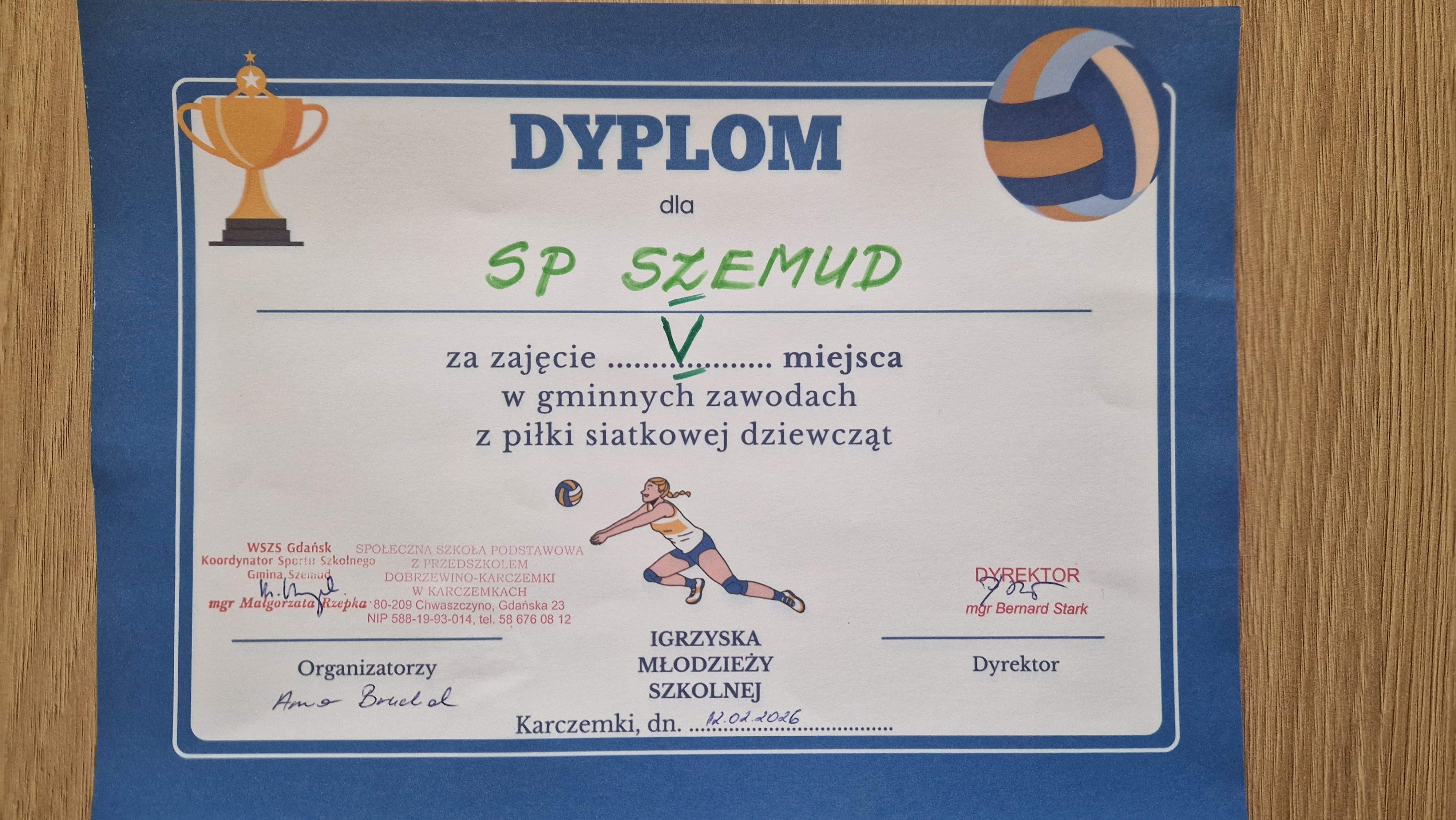 Skład SP Szemud: Patrycja Klecha, Agata Labuda, Rozalia Pranczk, Roksana Samp, Julia Ziemman, Patrycja Szymańska, Kornelia Kulerz- Prządka, Oliwia Lezner, Nikola Szymańska.