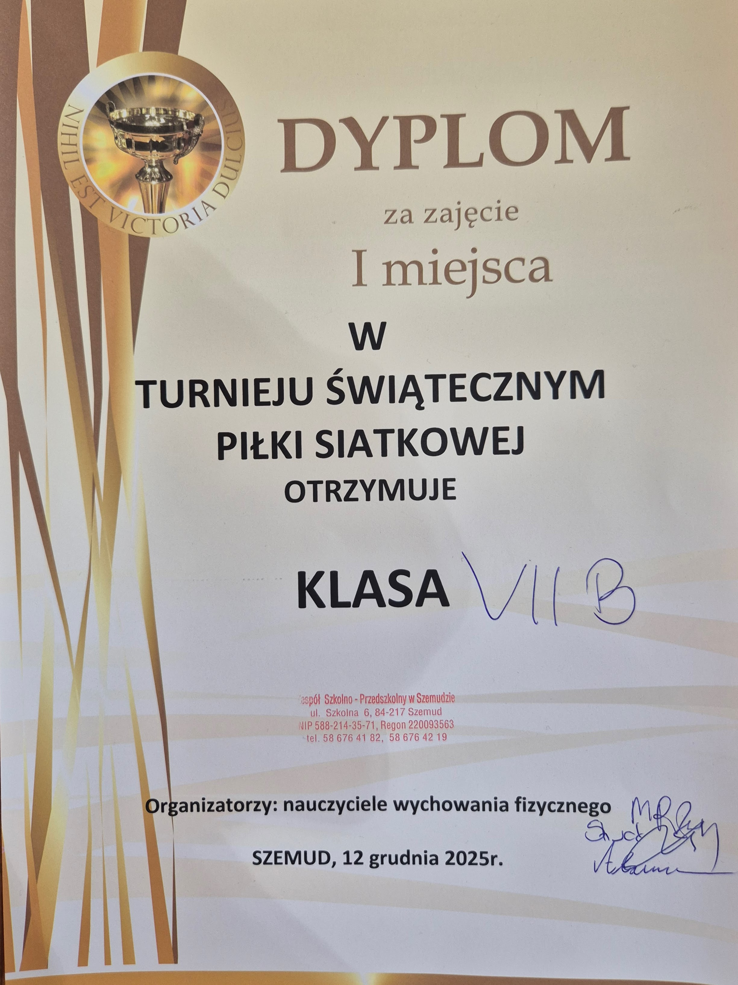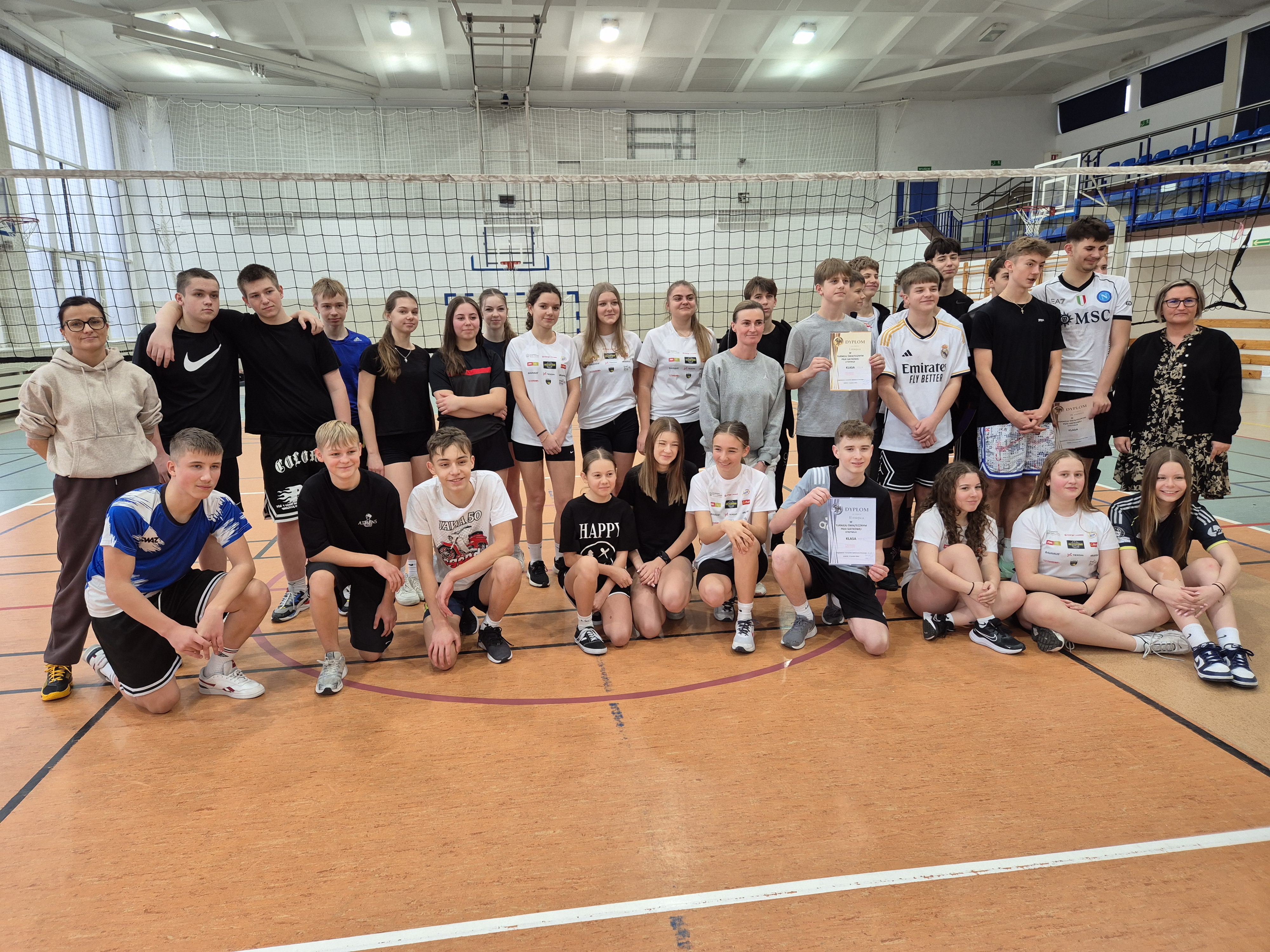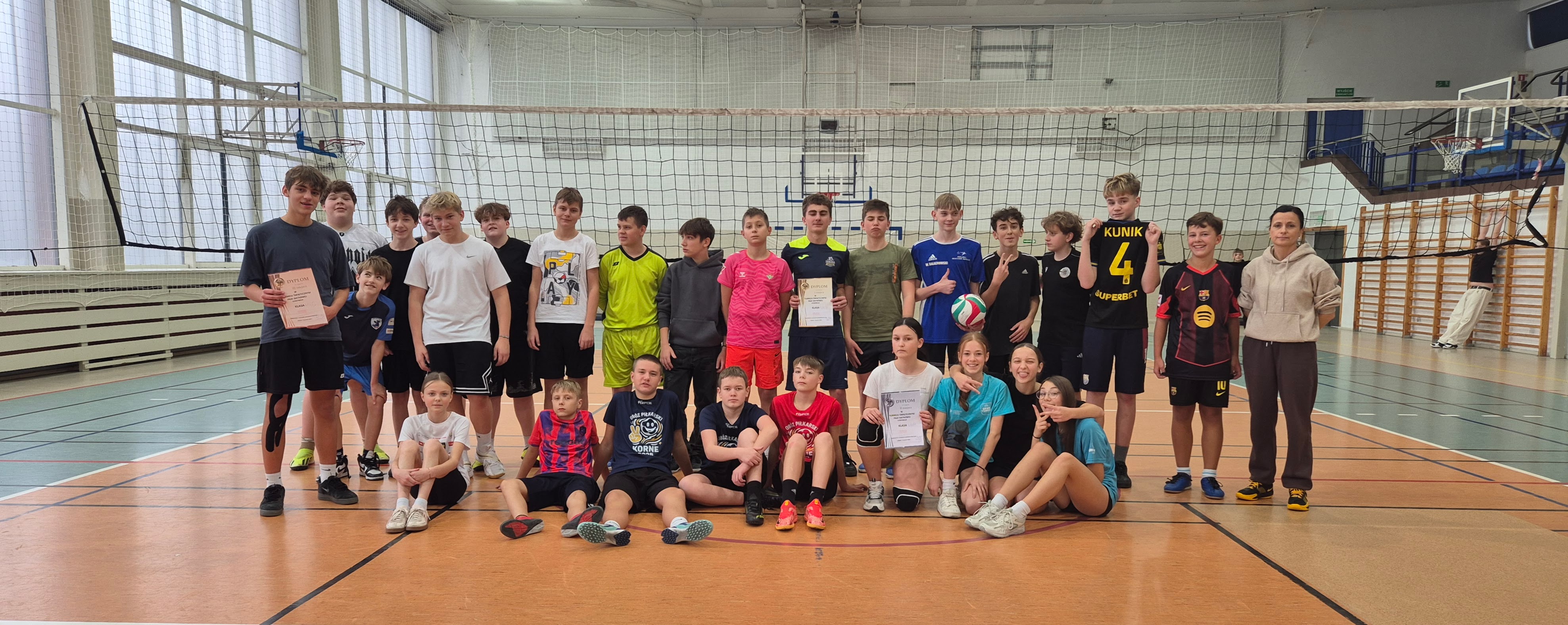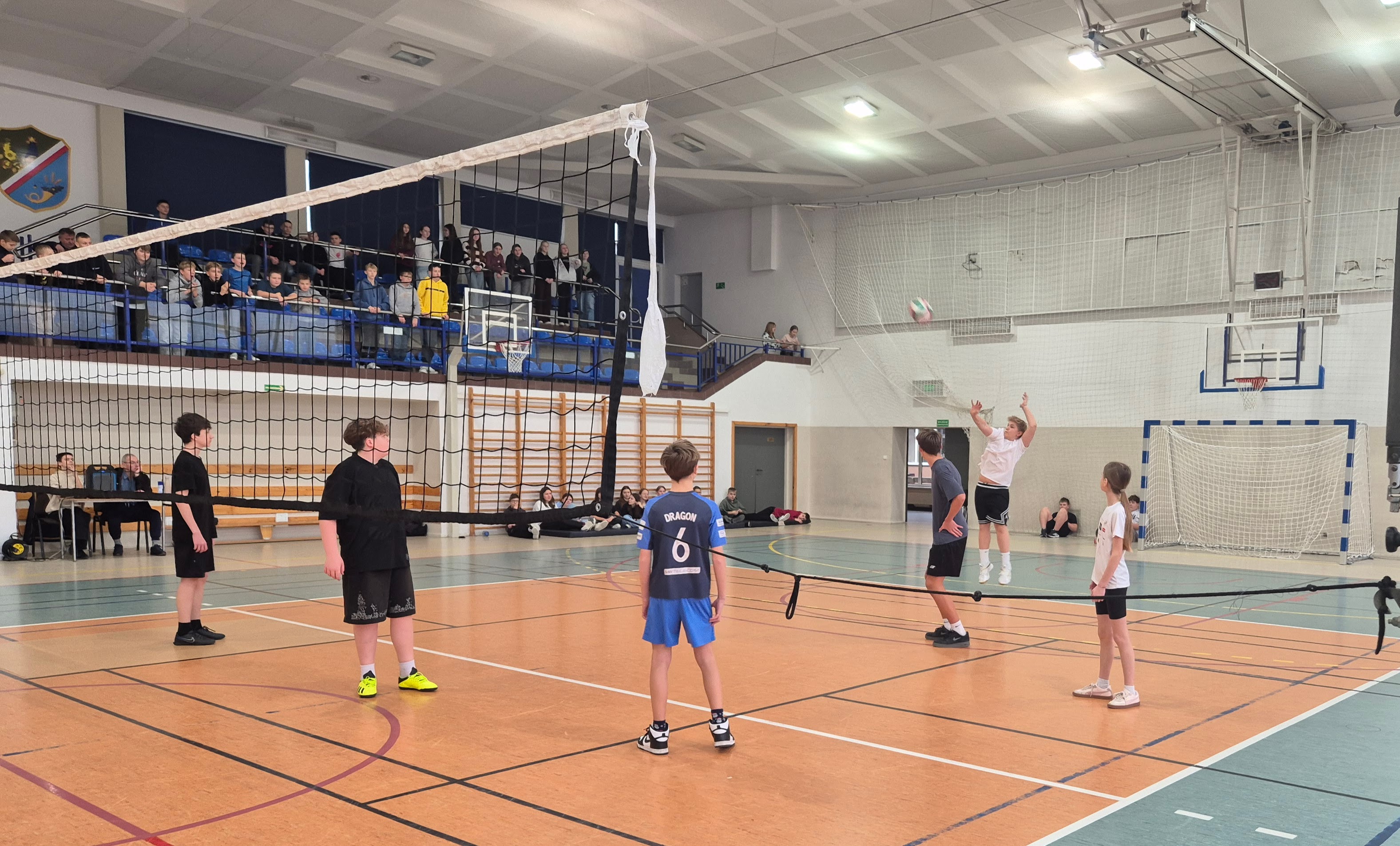 12 grudnia 2025r. uczniowie klas 7 i 8 wzięli udział w międzyklasowym turnieju piłki siatkowej zorganizowanym przez nauczycieli wychowania fizycznego. Rozgrywki odbywały się systemem "każdy z każdym" , każda klasa wystawiła do rywalizacji drużynę mieszaną - składającą się z chłopców i dziewcząt ( obowiązkowo z każdej klasy musiała grać minimum 1 dziewczyna).