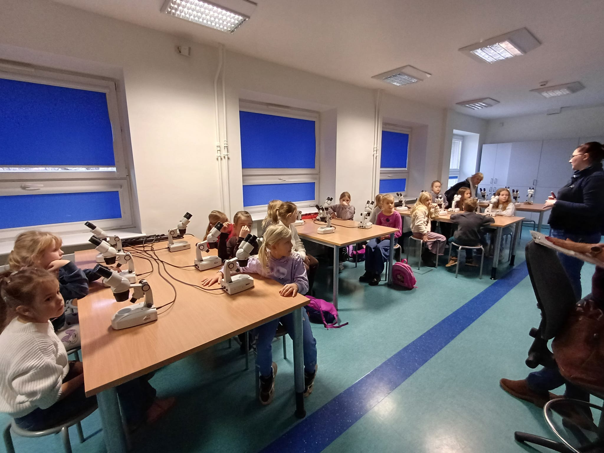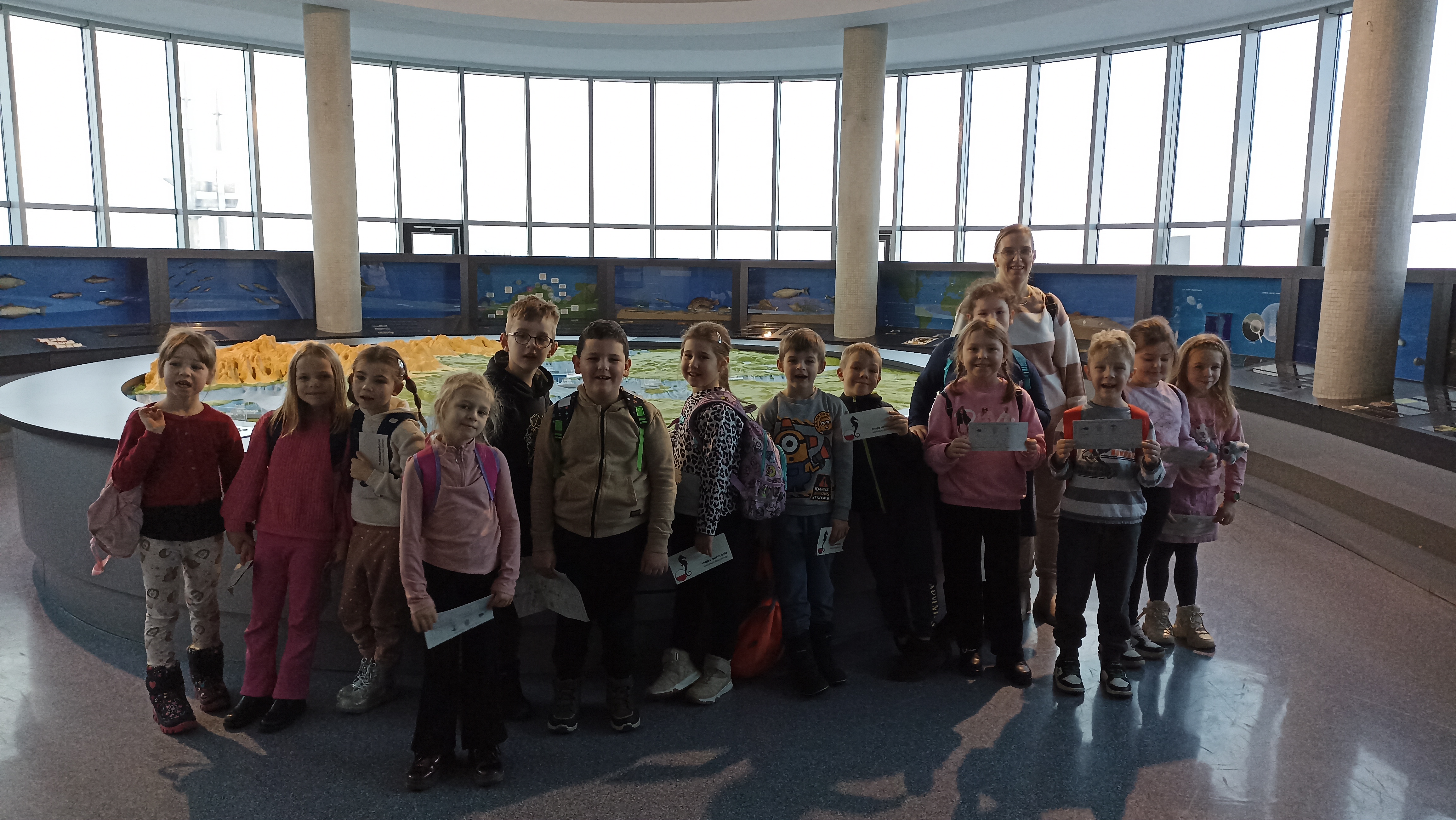 Uczniowie klas I a, I b, II a, II b uczący się języka kaszubskiego uczestniczyli w wycieczce szkolnej do Akwarium Gdyńskiego w ramach projektu „Kaszuby na fali” dofinansowany przez Ministerstwo Spraw Wewnętrznych i Administracji. Wyjazd odbył się w sobotę 30 listopada 2024 roku. Pierwszym punktem programu były zajęcia dla klas II, podczas których dzieci obejrzały prezentację multimedialną pt. „Bôłt pòd kaszëbską banderą”, po której przystąpiły do pracy laboratoryjnej z wykorzystaniem sprzętu optycznego. Dużym zaskoczeniem dla uczniów była możliwość obserwacji przez mikroskop materiału biologicznego, spreparowanych zwierząt morskich. Przyglądając się wspaniałym okazom dzieci wypełniały karty pracy. Dla klas I tematem spotkania było: „Kapitón Kùr Diôbeł i kaszëbsczé bùrczibasë” . Zajęcia realizowane były formie edukacji przez zabawę. Rozwiązywali zadania związane z poznaniem środowiska morza Bałtyckiego. Wiele emocji dostarczyło dzieciom zwiedzanie Akwarium Gdyńskiego. Dzieci miały szansę zobaczyć niezwykłe gatunki ryb, płazów, gadów pochodzących z różnych rejonów świata np. z Afryki, Ameryki Północnej, oraz północy naszego kontynentu. Wszyscy byli pod wielkim wrażeniem oglądanych stworzeń, zarówno tych wielkich, jaki i tych maleńkich. Dzień pełen różnorodnych wrażeń zakończył się spacerem po skwerze. Uczestnicy wycieczki wrócili do szkoły zadowoleni. Mamy nadzieję, że ta wycieczka długo pozostanie w pamięci.