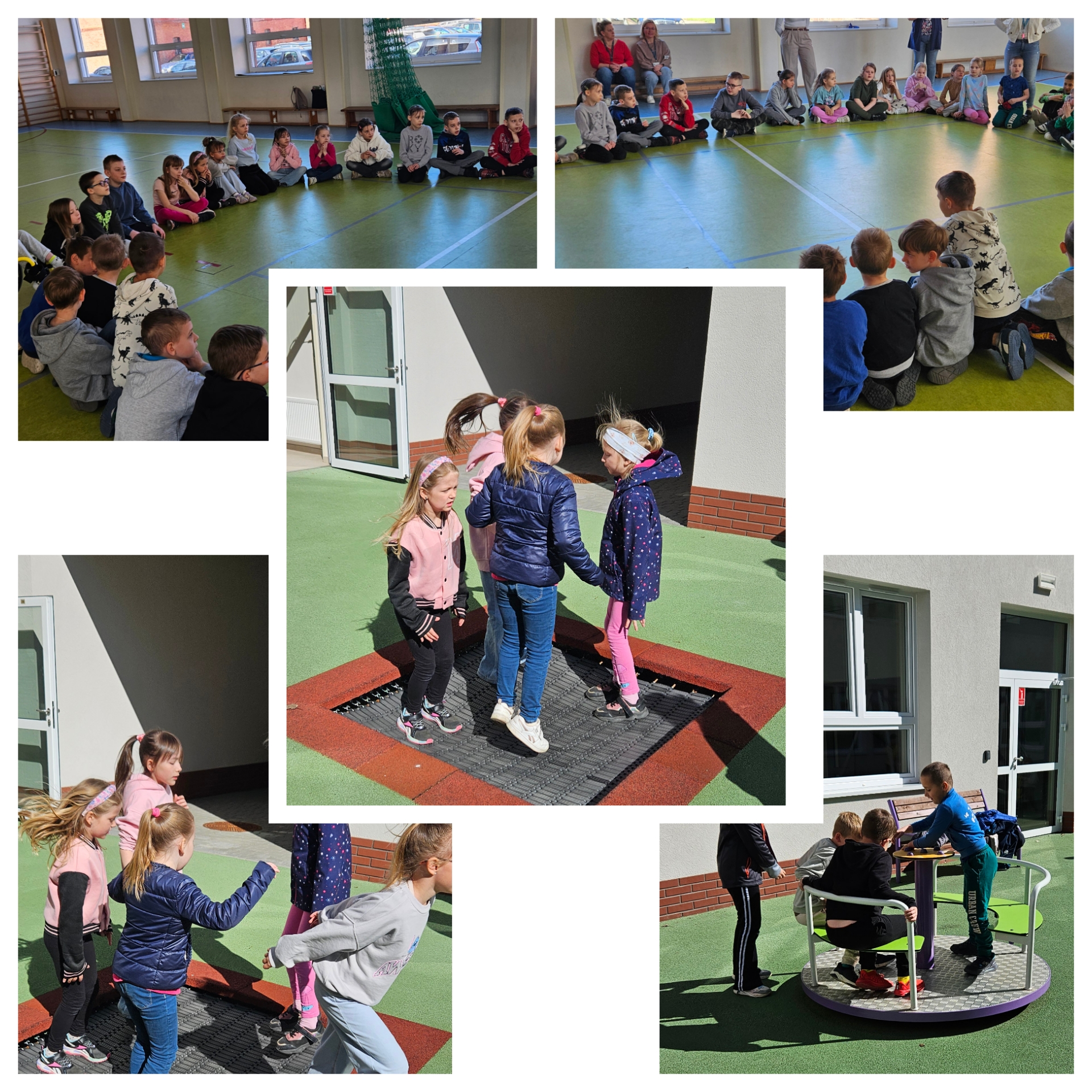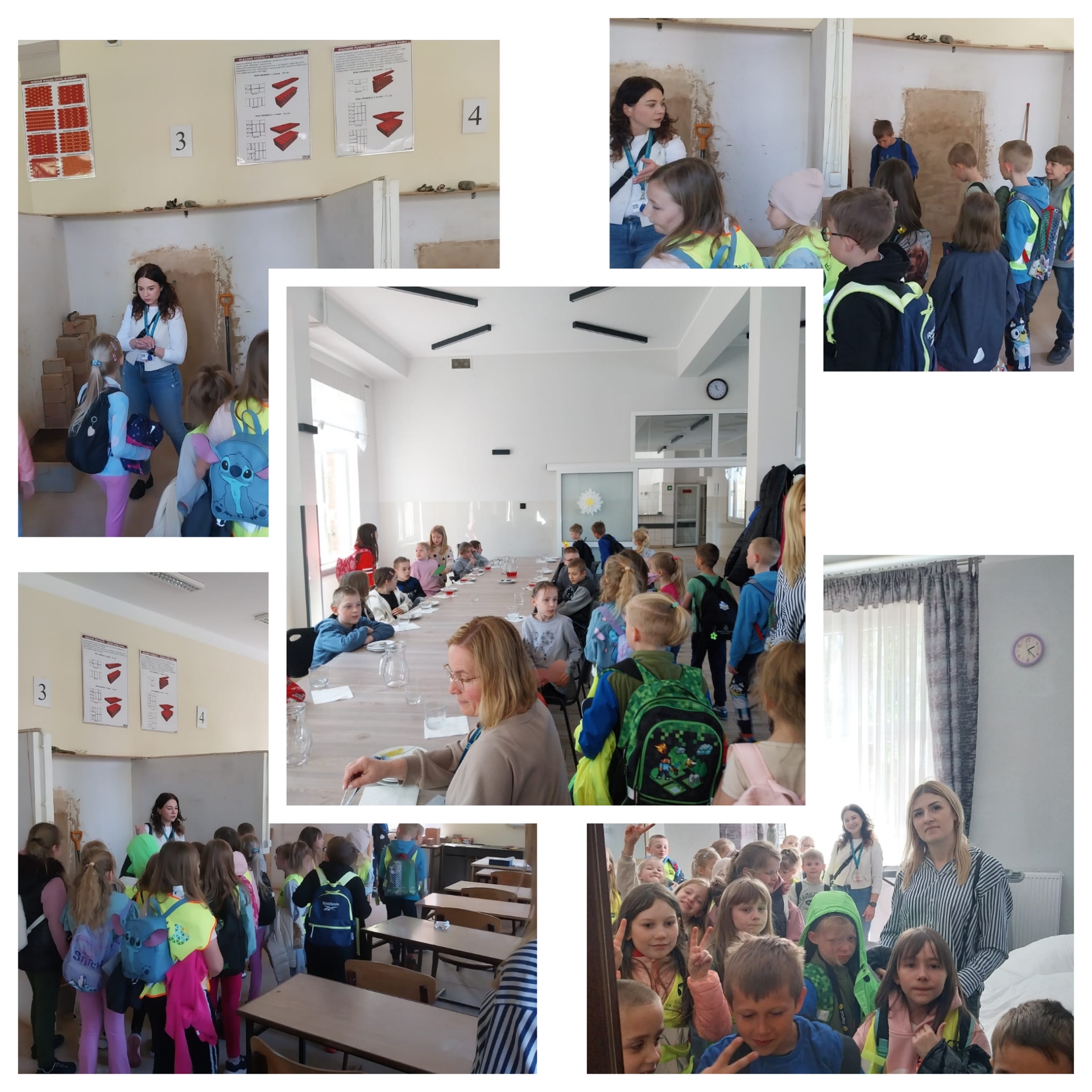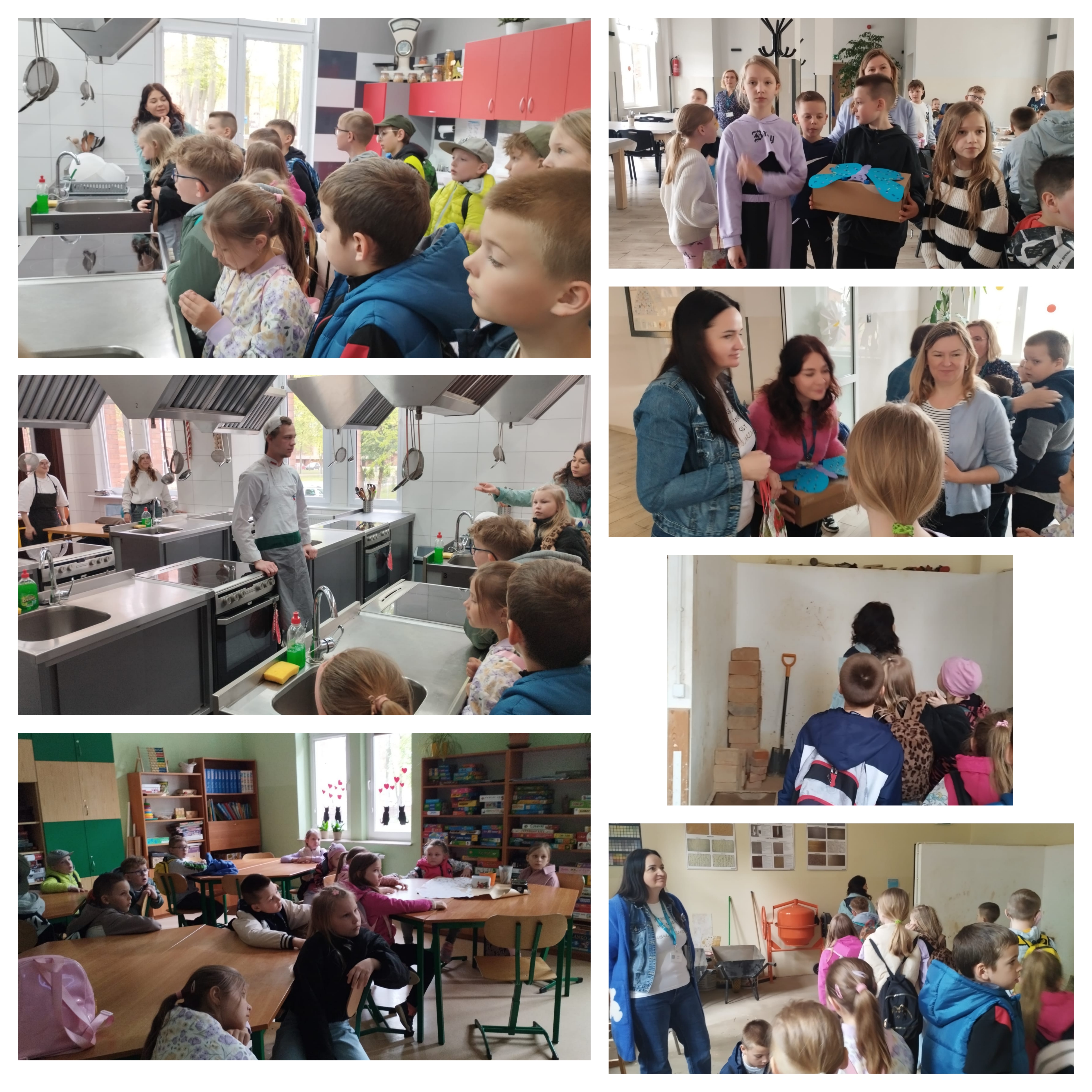 Podczas wizyty nasi uczniowie zostali bardzo ciepło przyjęci, bowiem gospodarze przygotowali szereg konkurencji sportowych oraz zabaw integracyjnych. Dzieci miały również okazję do wspólnej zabawy na terenie placu zabaw PZKS. Ponadto zostaliśmy oprowadzeni po całym obiekcie, który obejmuje przedszkole, szkołę podstawową, szkołę branżową oraz szkołę przysposabiającą do pracy. Podczas zwiedzania mieliśmy okazję zobaczyć następujące pracownie: ceramiczną, murarską, gastronomiczną i hotelarską. Uczniowie z ogromnym zainteresowaniem przyglądali się wyposażeniu i funkcjonowaniu każdej z nich. Zwiedzanie oraz wspólne zabawy zostały zwieńczone poczęstunkiem przygotowanym przez gospodarzy w stołówce szkolnej, co sprawiło dzieciom wiele radości i było miłym zakończeniem tego wyjątkowego spotkania.