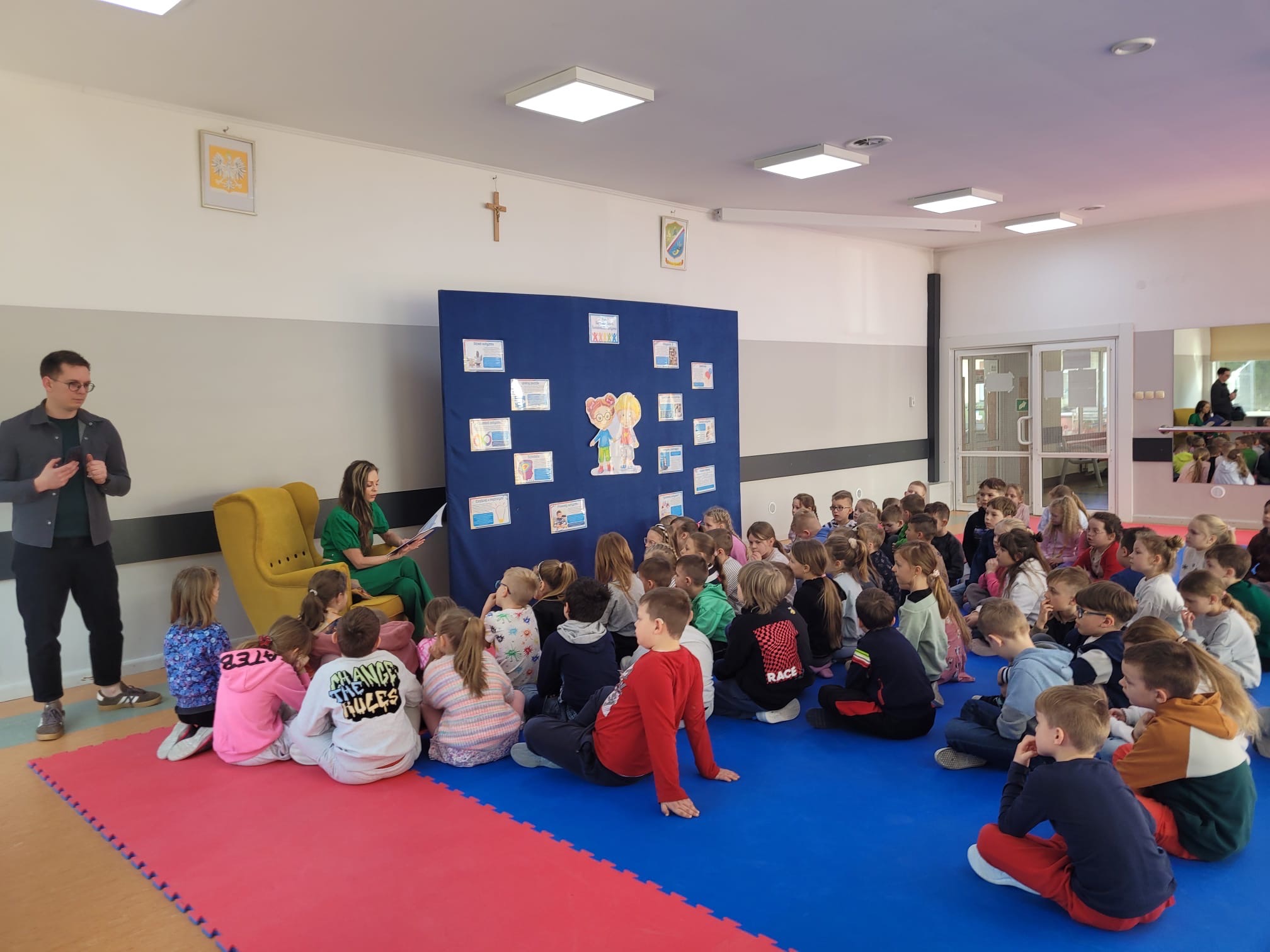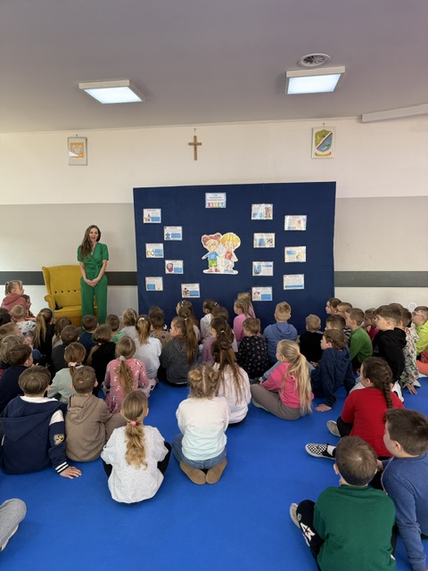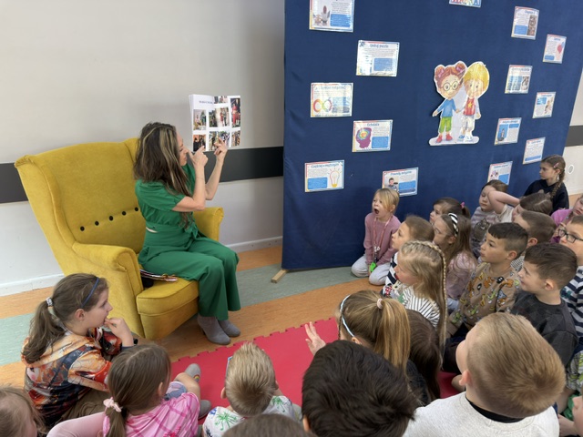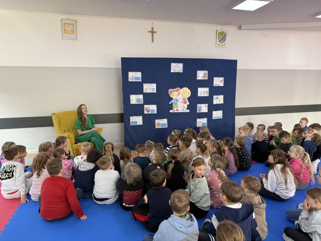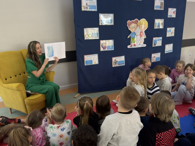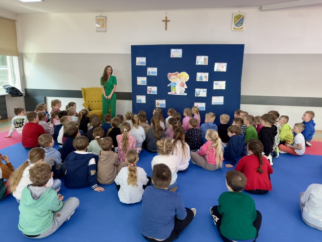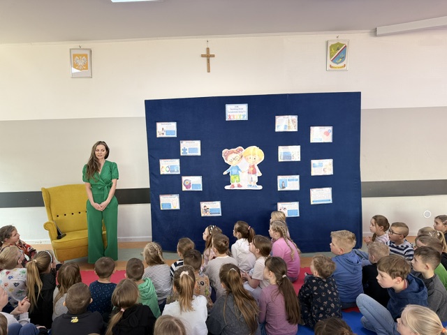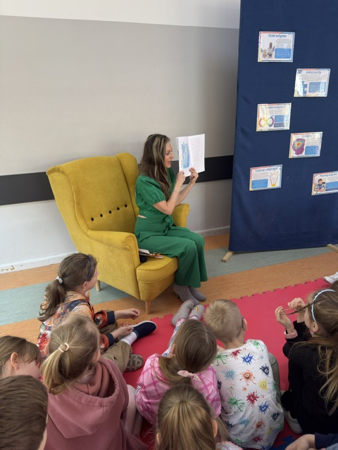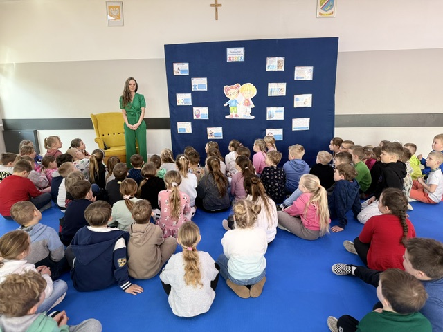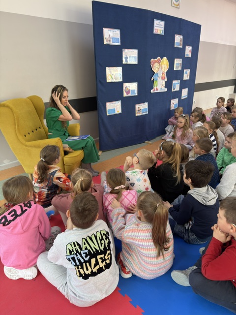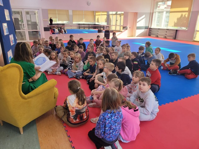 Pani Izabela w sposób niezwykle przystępny i poruszający opowiedziała dzieciom, czym jest autyzm. Przybliżyła codzienność dzieci w spektrum, ich potrzeby, trudności, ale także wyjątkowe talenty i sposób postrzegania świata. Uczniowie słuchali z ogromnym zainteresowaniem, zadawali pytania i dzielili się swoimi spostrzeżeniami. Był to czas prawdziwego spotkania – nie tylko z autorką, ale przede wszystkim z drugim człowiekiem i jego wrażliwością.